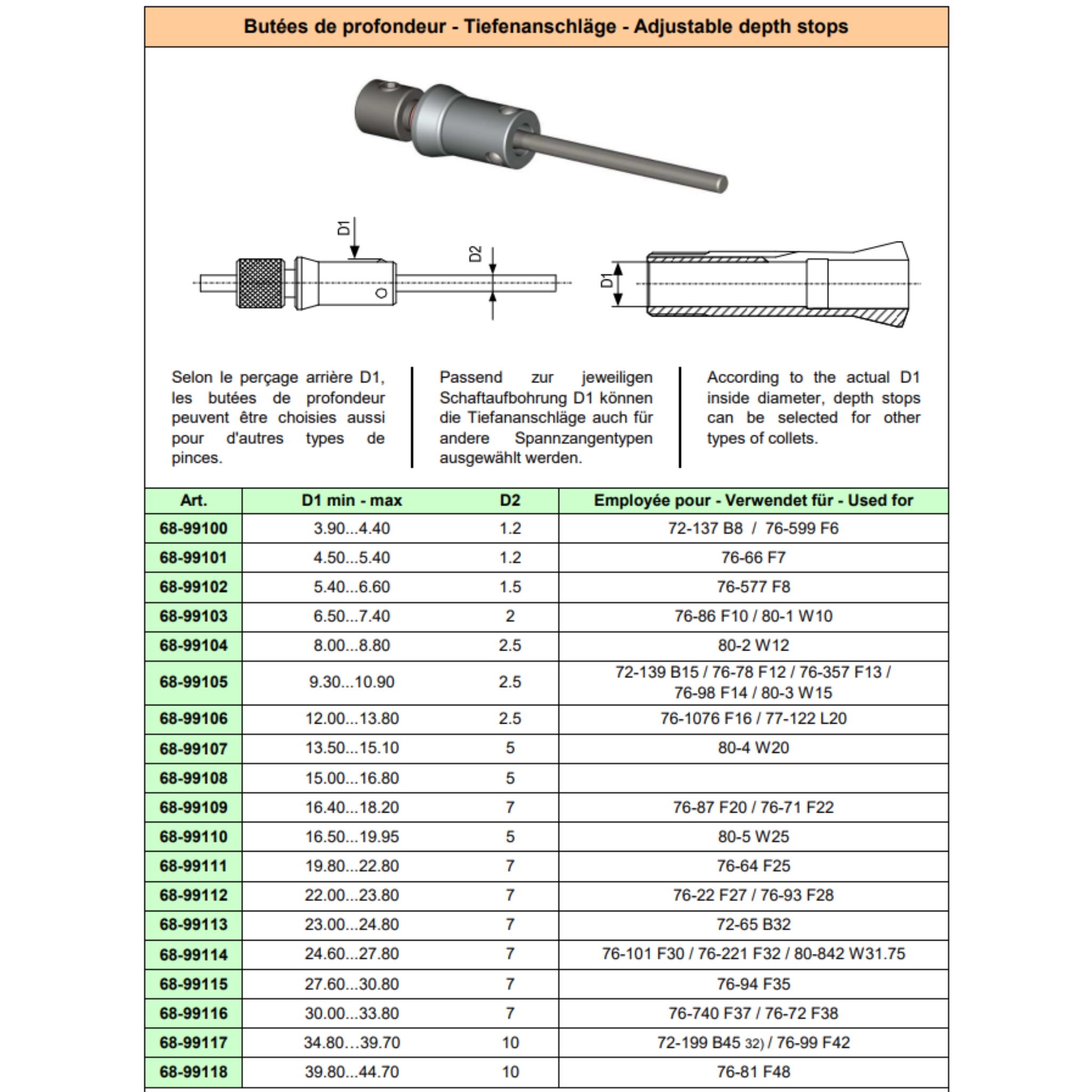 The adjustable depth stop may also be adapted for use with similar collet systems.