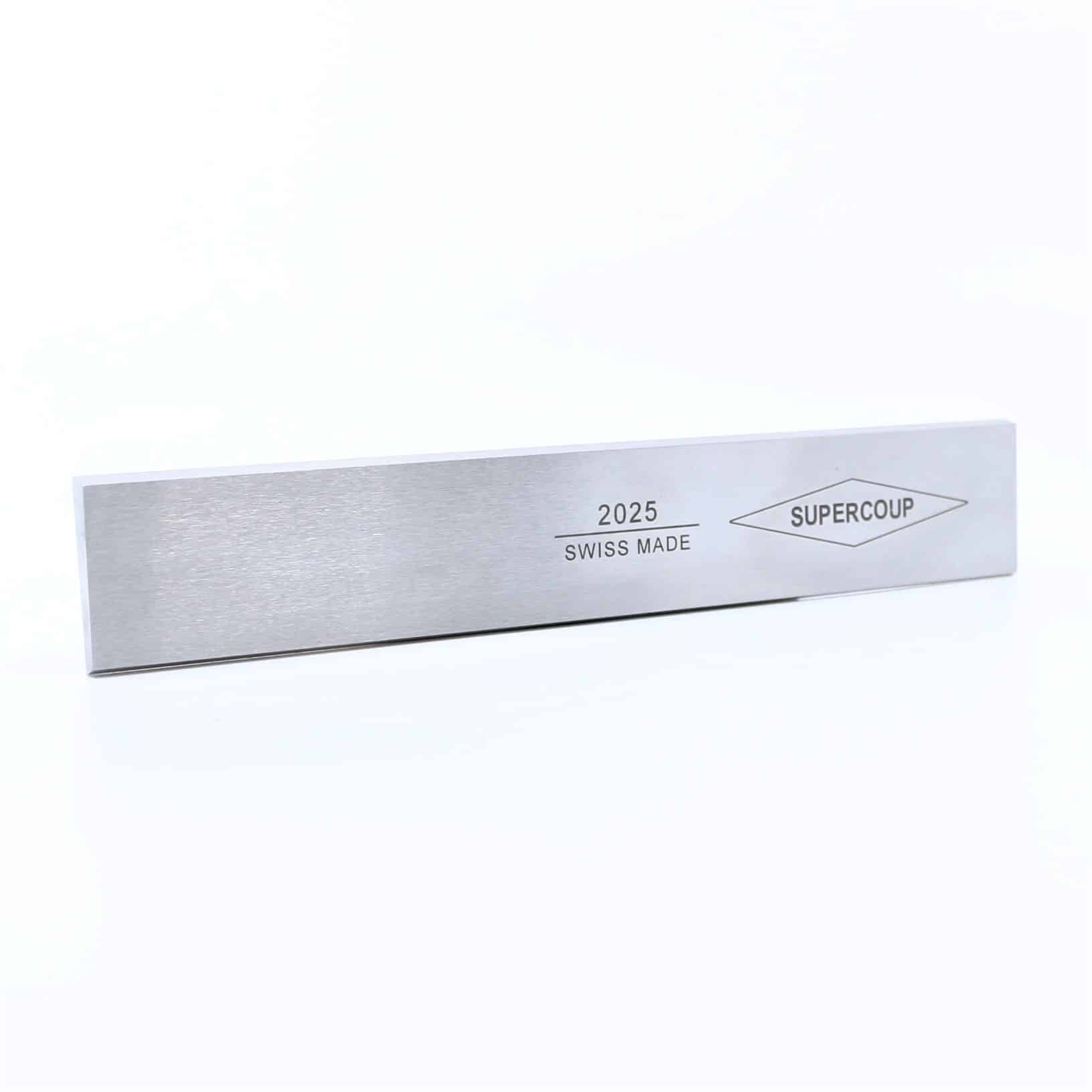 Supercoup® 2025 parting blade made of high-quality HSS. Versatile, it can be used for machining brass, aluminum, steel, cast iron, case-hardened steel, and stainless steel. Compatible with Tripan® 335, 259-3, 259-4, 259-5, and 2125 blade holders and, via the 259-3 adapter, with Tripan® 231 / 231B tool holders.