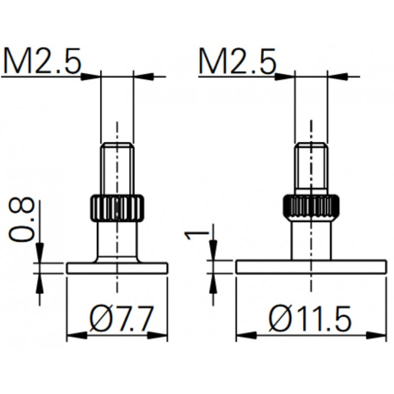 Set of two SYLVAC disc measuring tips with M2.5 thread for accurate contact on your dial indicators. Ensures repeatable, reliable readings.