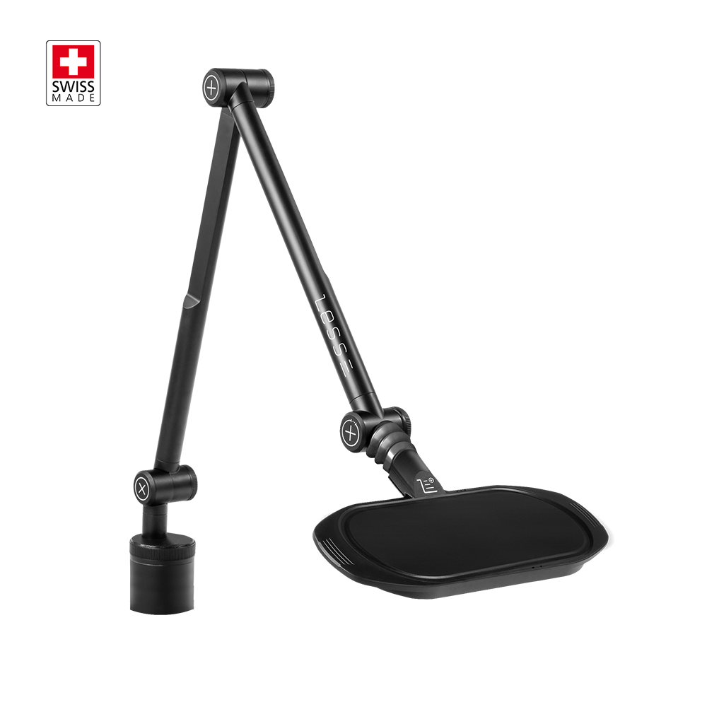 La tête d’éclairage de la lampe ne dégage pas de chaleur, offrant à l’utilisateur un confort incomparable. Ce dernier est amplifié par les trois charnières (dont la principale est certifiée au-delà de 100’000 cycles) qui permettent de positionner la lampe avec une facilité considérable et une grande précision. Afin de satisfaire pleinement les utilisateurs de la CHROMA, celle-ci a été conçue sur un concept modulable avec des accessoires tels que la base. Son embout standard garantit une adaptabilité d’installation sur la plupart des postes de travail. Elle peut aussi être accompagnée de sa base pour une utilisation sur tout type d’espace de travail.