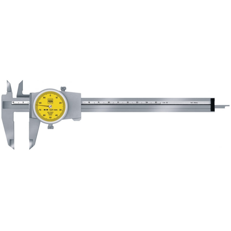 Le pied à coulisse CCMA-M 0,01 de TESA offre une précision accrue pour vos mesures industrielles. Corps en acier inoxydable trempé et rectifié, crémaillère protégée contre la salissure, boîtier métallique chromé mat et cadran rotatif Ø 32 mm (1 mm par tour) avec vis de blocage. Livré en coffret avec rapport de contrôle.