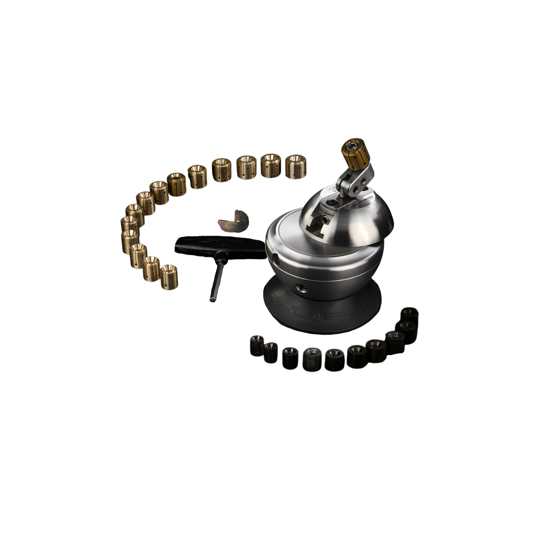 Ce set Juratools comprend le 3X Holder, permettant une inclinaison fluide et un positionnement précis, pour toujours travailler sous l’angle optimal. Les collets en laiton robustes maintiennent fermement les bagues et évitent tout déplacement indésirable lors des travaux de gravure fine ou de sertissage.